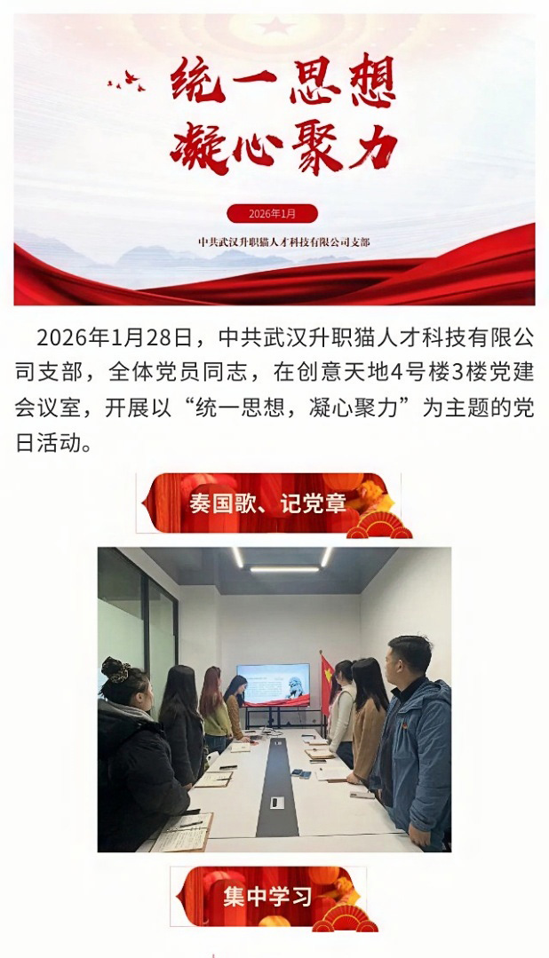 升职猫2026年1月“统一思想,凝心聚力”主体的党建会议完美结束
